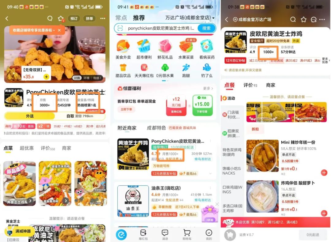 面对三大平台的差异化规则,皮欧尼黄油芝士炸鸡展现出灵活的经营智慧: